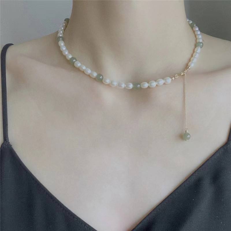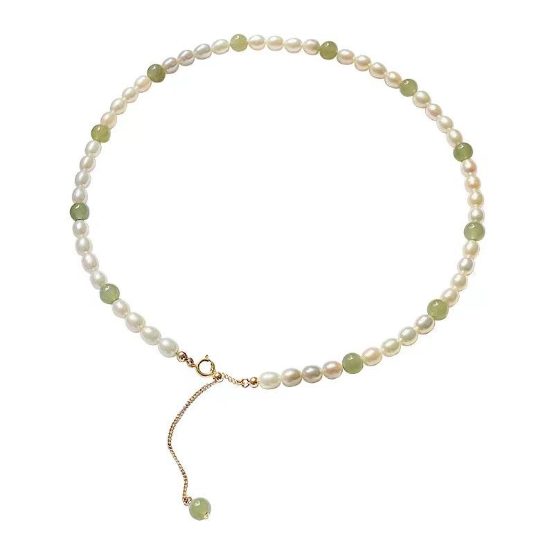Conjunto de Collar, Pulsera y Aretes de Perlas de Agua Dulce y Jade Natural de Hotan, Estilo Retro, Joyería China-Chic para Mujer