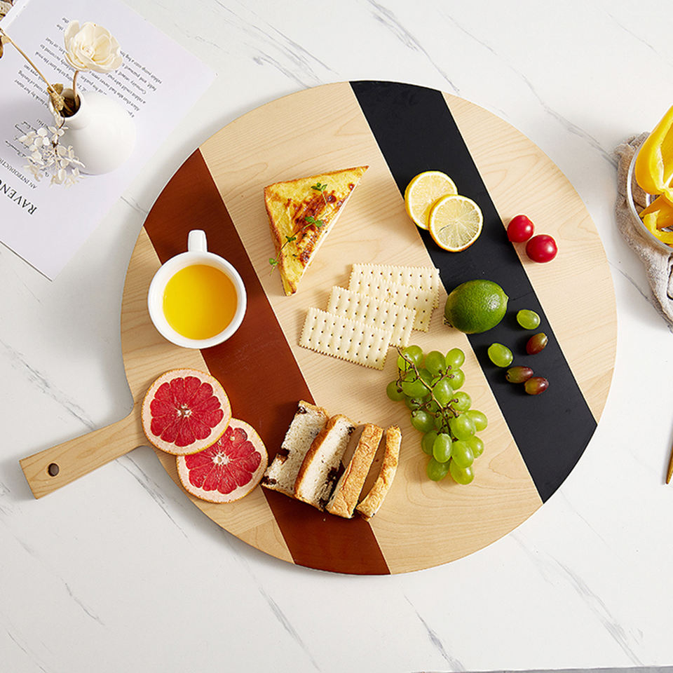 Pintura en aerosol redonda grande para casa Natural, tabla para cortar madera de pino maciza para verduras, frutas, queso, charcutería