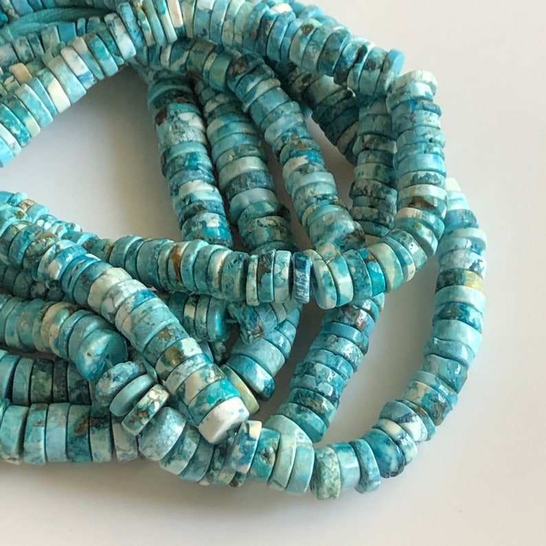 Cuentas de Piedra Natural Howlite Turquesa Lisa en Forma de Moneda Heishi para Fabricación de Joyas, Hilo GDS1737, Piedra Suelta