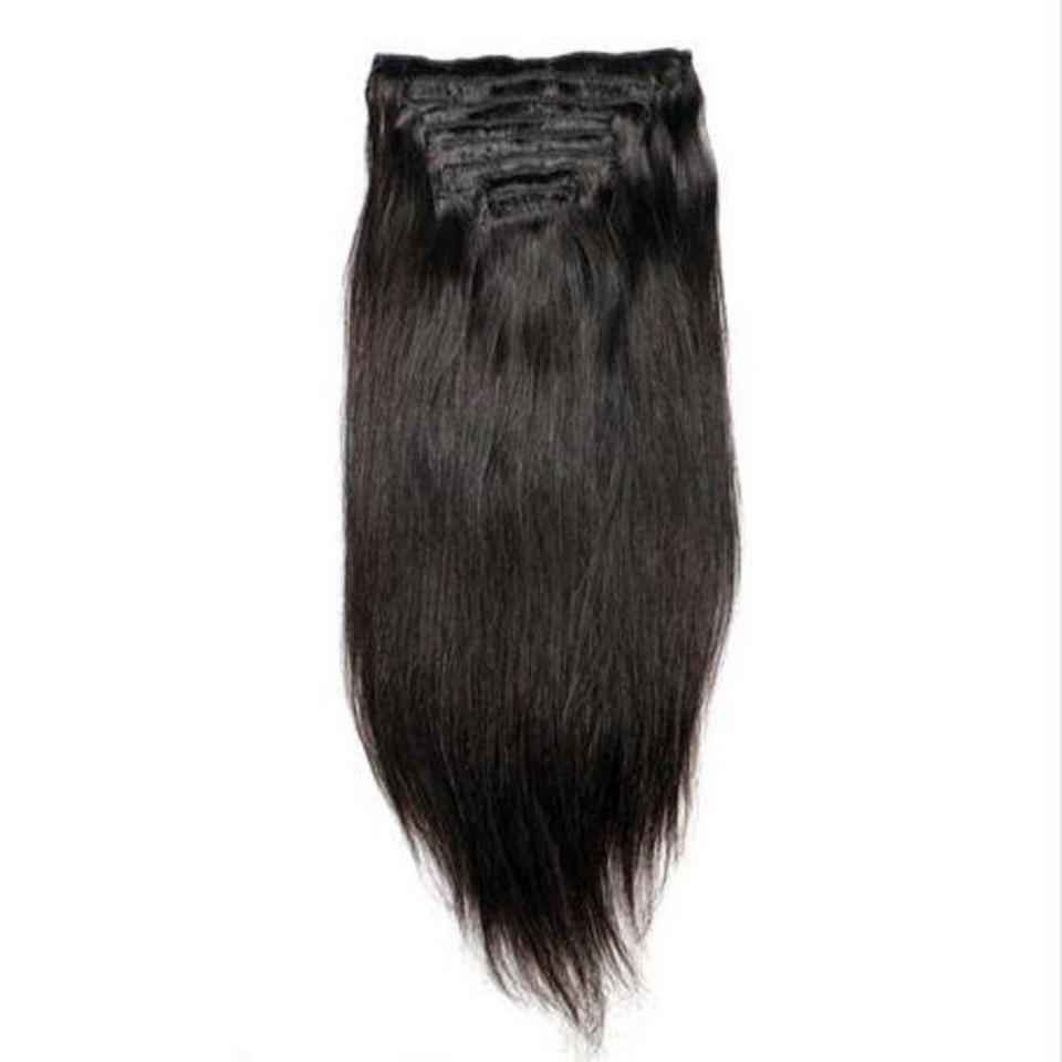 Extensión invisible de cabello humano virgen de pelo con clip Remy indio natural %