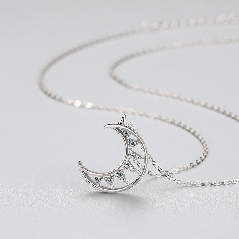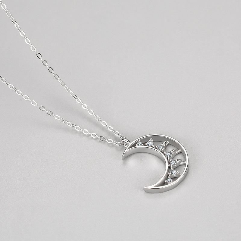 Collar con Colgante de Luna de Plata de Ley S925 con Circonita Redonda de Inspiración Natural, un Regalo Romántico para Mujer