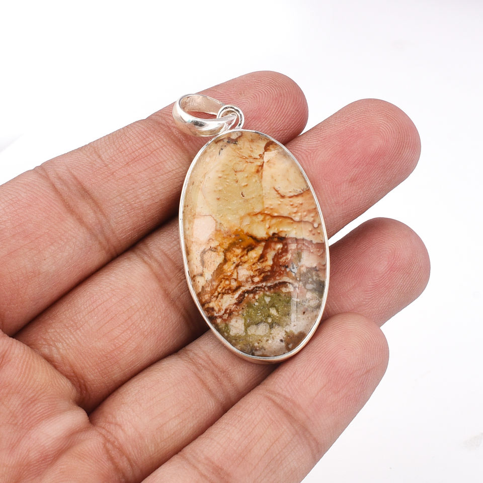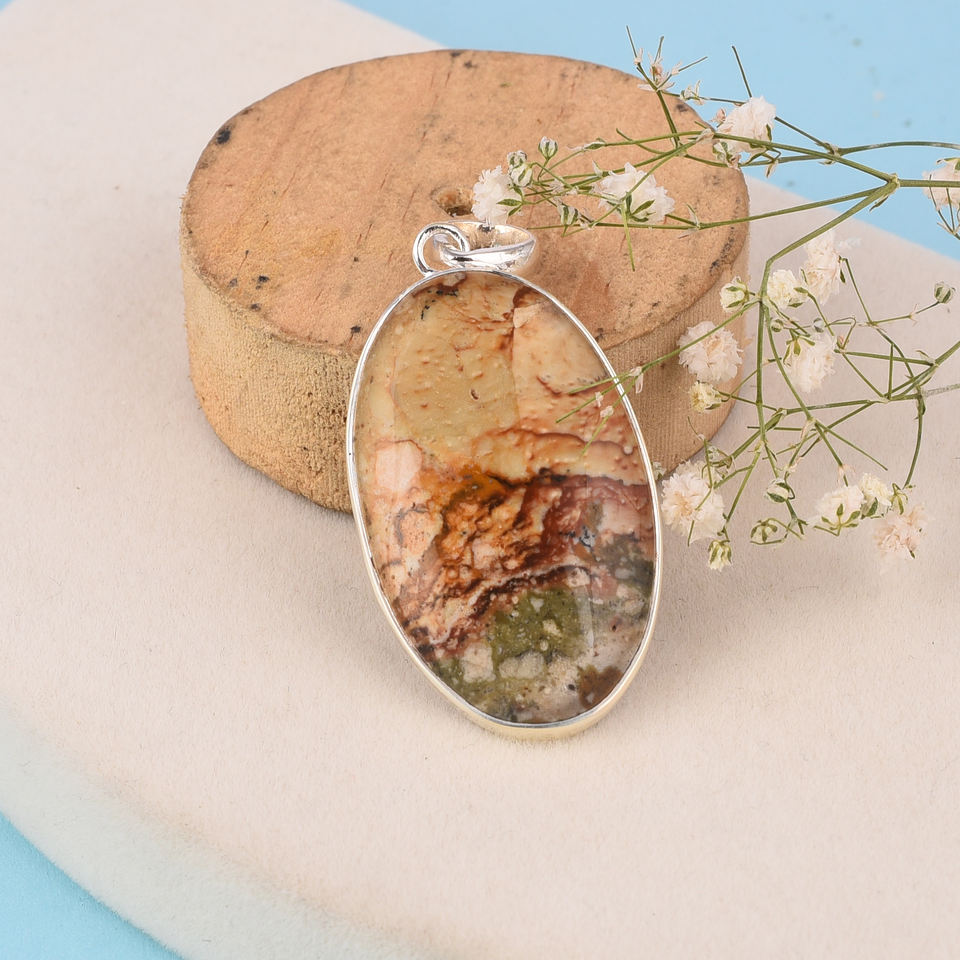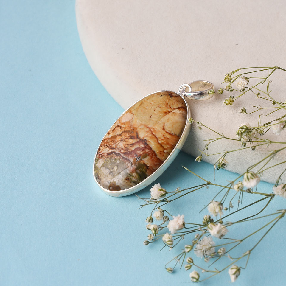 Nombre del Producto:Colgante de Plata de Ley 925 con Gema de Jaspe Natural de Forma Ovalada