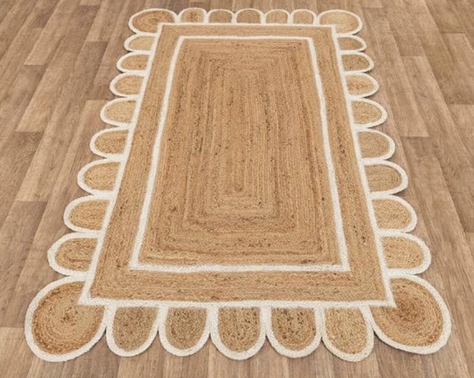 Alfombra de Yute Natural con Borde Festoneado – Alfombra Cuadrada Boho Ecológica para Sala de Estar y Decoración del Hogar