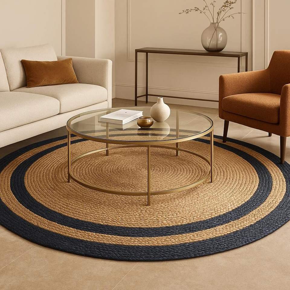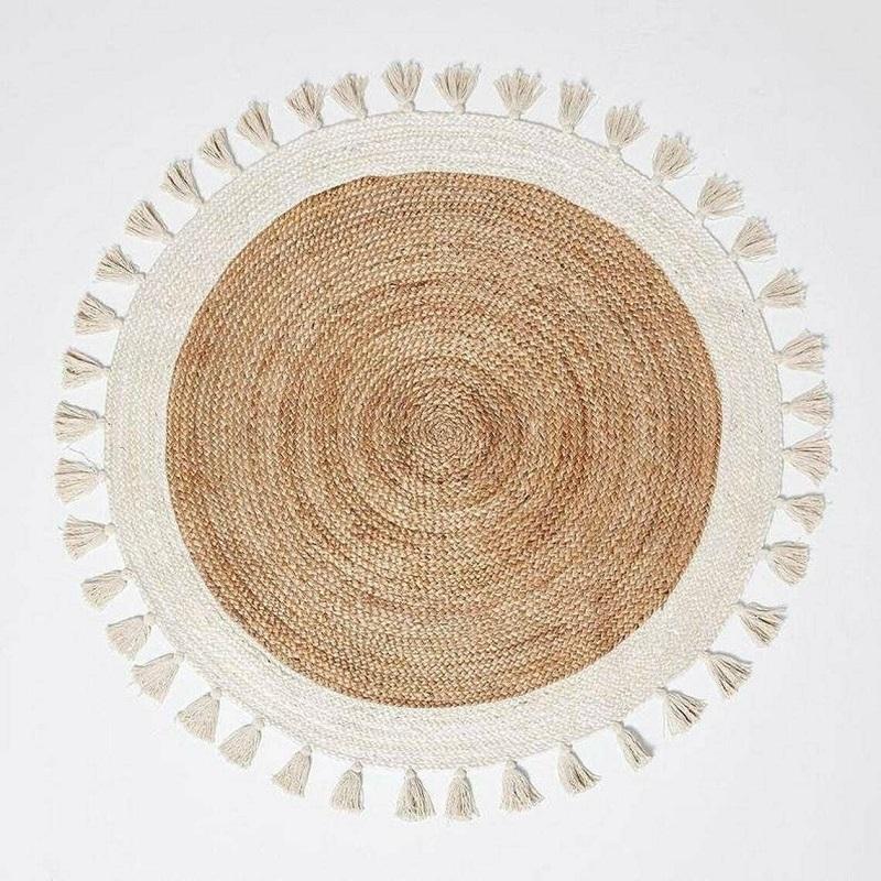 Alfombra Trenzada de Yute Natural, Alfombra Tejida a Mano para Sala de Estar, Dormitorio, Decoración del Hogar, Alfombra Tejida de Yute Ecológica, Trenzada a Mano