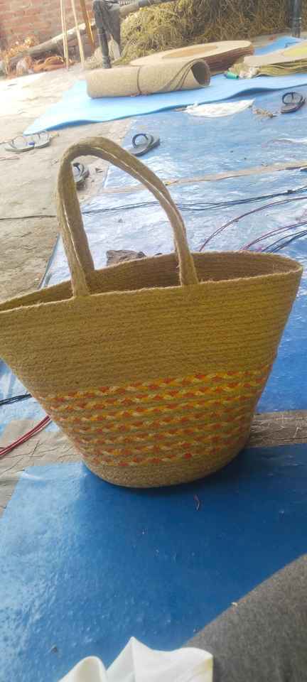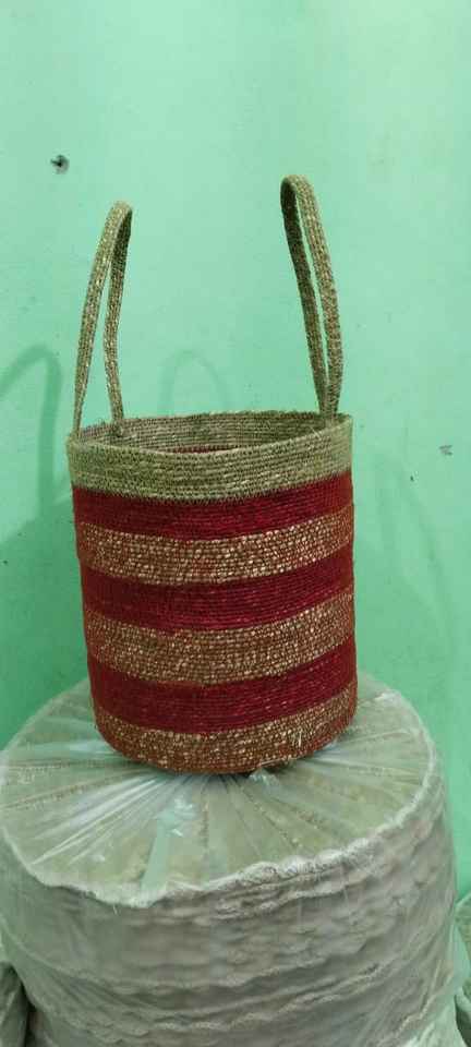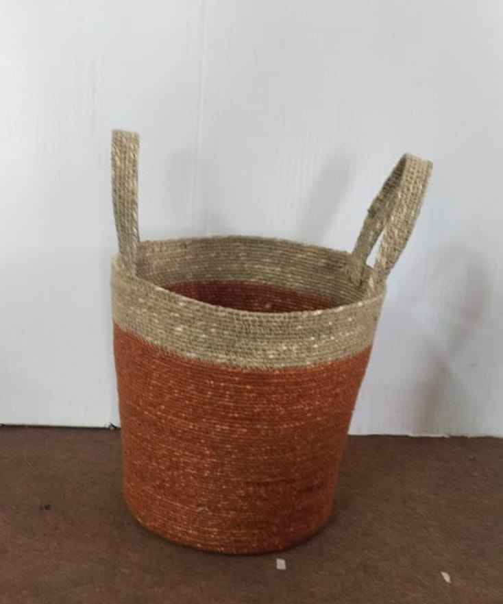 Cesta de yute natural tejida a mano con asas, bolsa de almacenamiento ecológica, organizador, cesta para decoración del hogar y uso en lavandería.