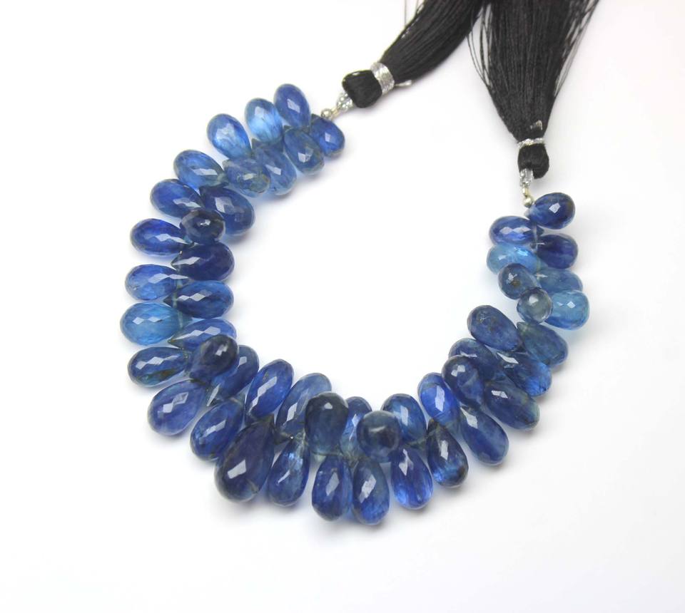 Cuentas de gota de 6 pulgadas facetadas de cianita Natural hechas a mano, cuentas de pulsera colgantes sueltas azules de alta calidad para la fabricación de joyas