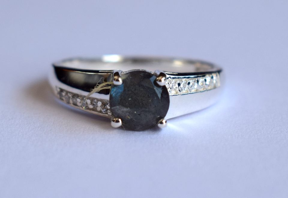 Anillo de Plata de Ley 925 con labradorita Natural, 4 puntas, hecho a mano, labradorita redonda