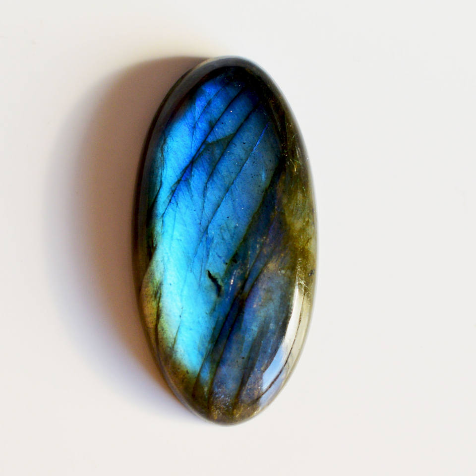 Magnífica piedra preciosa de labradorita azul, con reverso plano, pulida, de forma ovalada, con destellos azules, cabujón de labradorita para la elaboración de joyas.