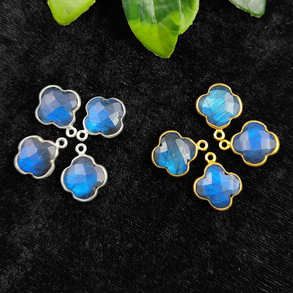 Nombre del producto:Clover Briolette Gemstone 925 Sterling Silver Bezel Setting Pendant