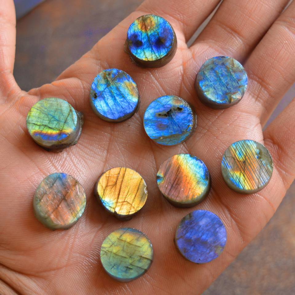 Labradorita natural disco plano forma redonda cabujón suelto piedra preciosa ambos lados planos para la fabricación de joyas rebanadas planas de cristal curativo