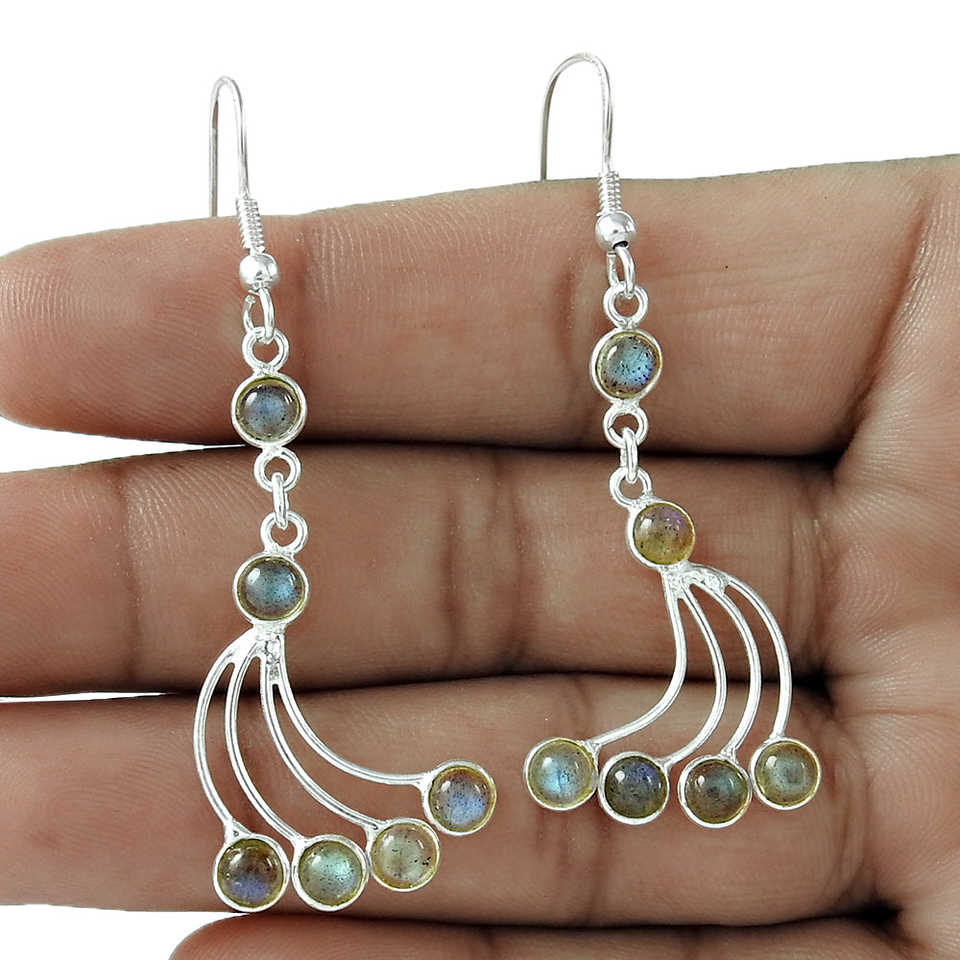 Pendientes de piedras preciosas de labradorita natural en Plata de Ley 925 sólida, pendientes bohemios hechos a mano a la moda, regalo de joyería perfecto para mujer