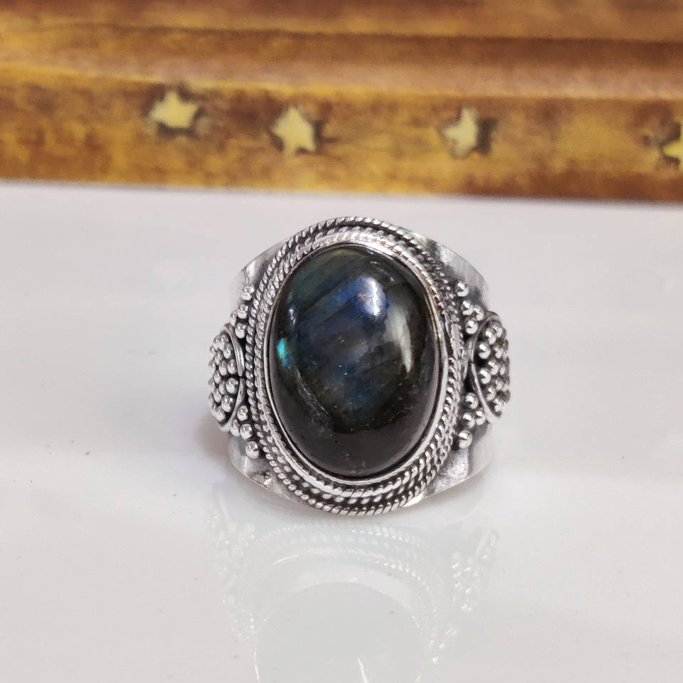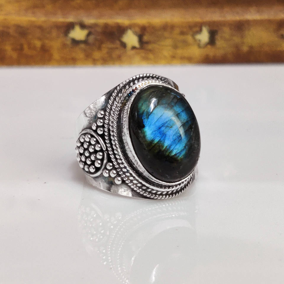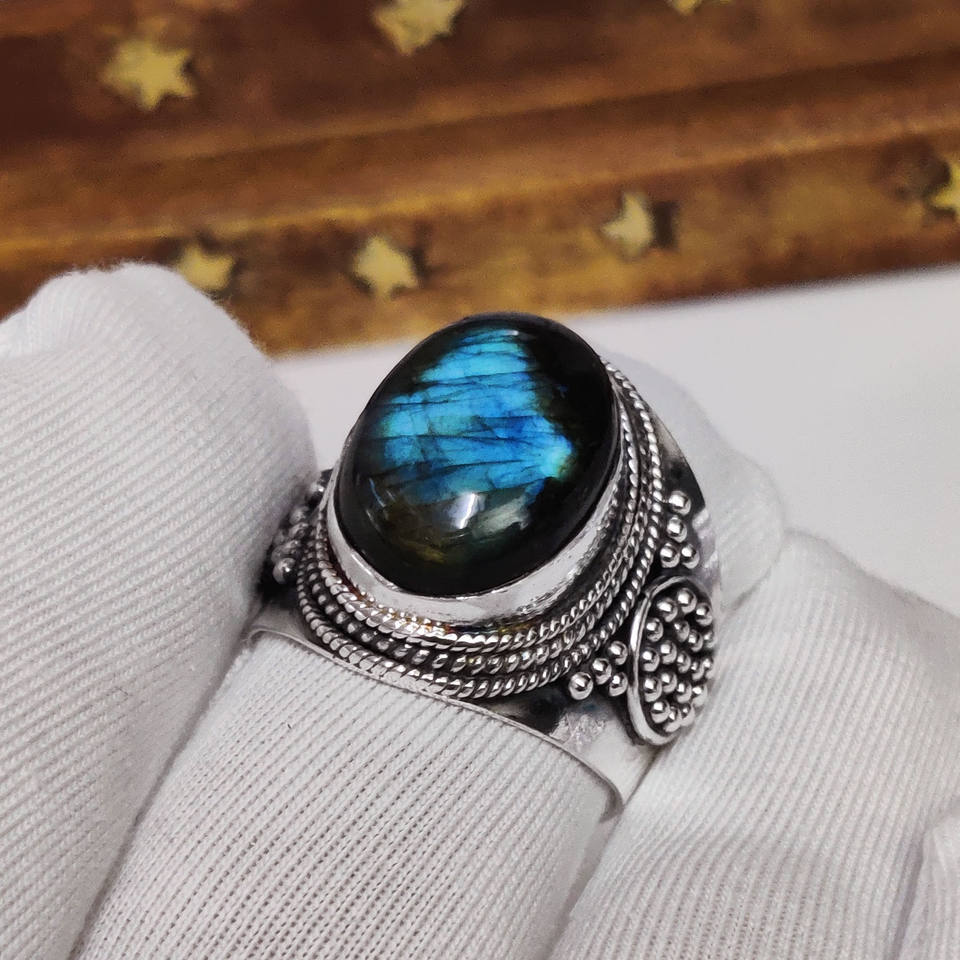 Anillo de Labradorita Natural, Anillo de Piedra Preciosa de Labradorita con Fuego Azul, Anillo de Piedra con Destello Azul, Regalo Único para Ella