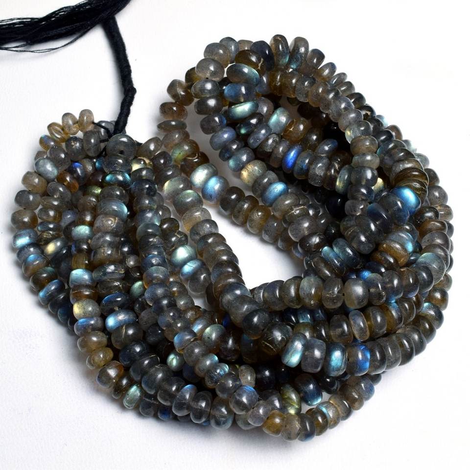 Piedra de labradorita Natural, cuentas de piedras preciosas Rondelle lisas, cuentas sueltas, fabricación de joyas DIY, hilo de cuentas, precio de fábrica