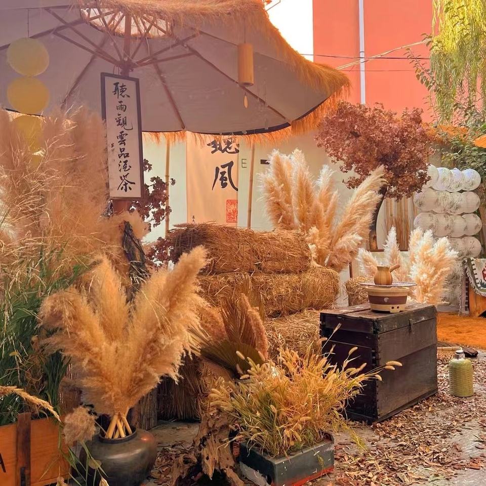 Planta seca de Flor de Caña de Pampa roja grande natural para paisaje de boda y decoración de muebles para el hogar ramo de decoración del hogar de Internet