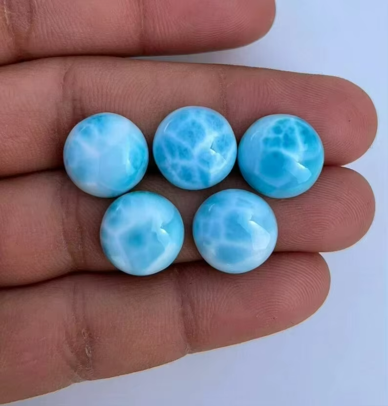 Piedras Preciosas de Larimar Natural en Cabujón, Piedras Preciosas Sueltas de Larimar, Calidad Superior, Formas Redondas, Tamaños Variados, Perforación Libre, Anillos, Larimar Pulido