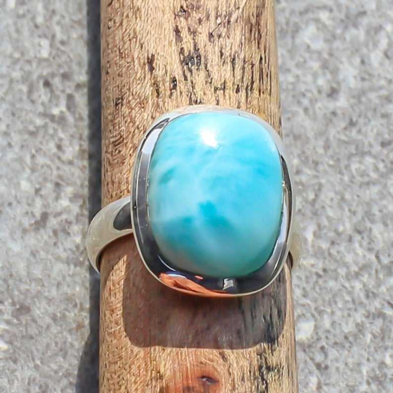Natural Larimar suave rectángulo forma piedra preciosa 925 plata esterlina sólida anillo hecho a mano 7,5 gramos al por mayor