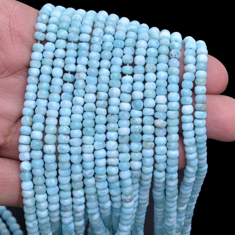 Cuentas de piedras preciosas naturales Larimar Smooth Rondelle Shape 4-6mm Piedra de Larimar azul Cuentas sueltas pulidas para la fabricación de joyas Tasa a granel
