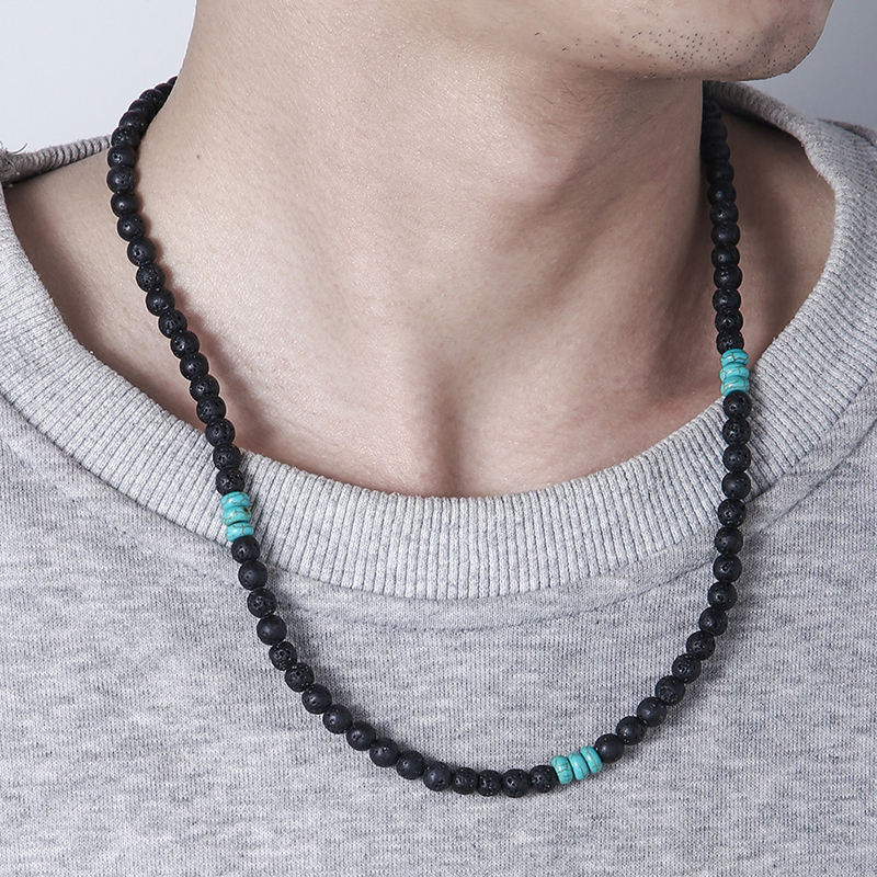 Collar de Cuentas de Piedra Volcánica de Lava Natural para Hombre, Collar de Piedras Preciosas Negras Minimalistas de 6 mm para Hombre y Niño