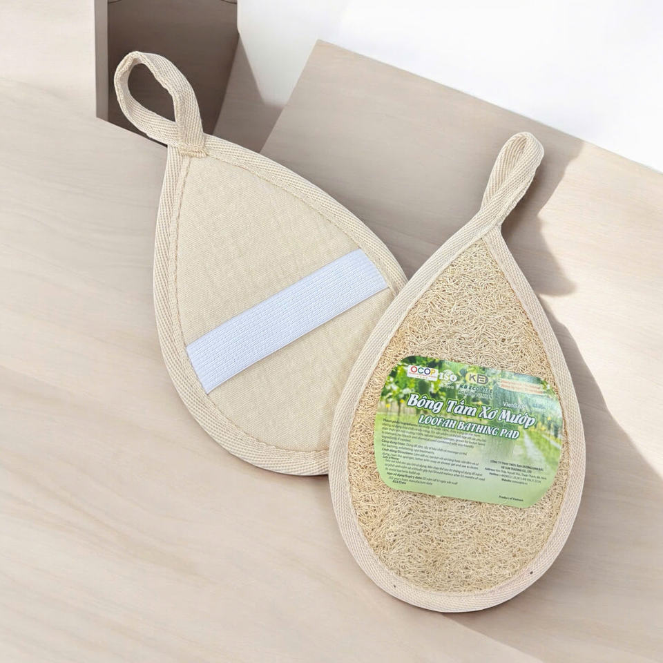 Esponja de Baño de Textura Dual de Lufa Natural y Algodón, Exfoliante Ovalado Sostenible, KB Eco Life 100% Natural