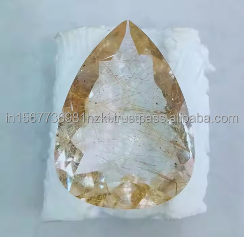 Piedra preciosa suelta natural Cobre Rutilo Cuarzo Corte al por mayor Piedra preciosa suelta Corte Cobre Rutilo Cuarzo Tamaño 37X27X10 MM Peso 74 Ct