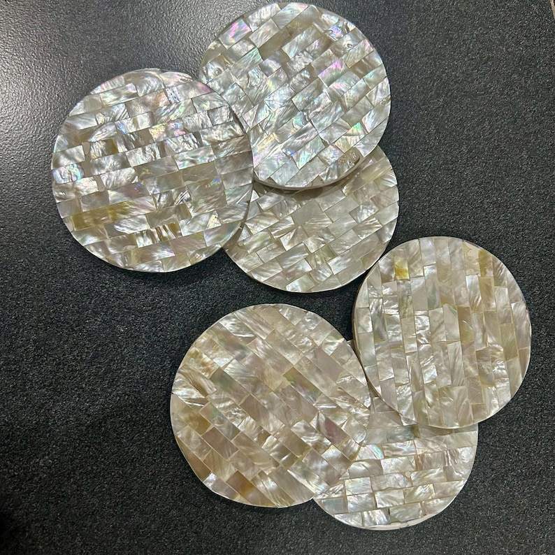 Posavasos de Nácar Natural, Superficie de Concha Pulida, Diseño Artístico, Resistentes al Calor, Ecológicos, Hechos a Mano, Tamaño Personalizable para