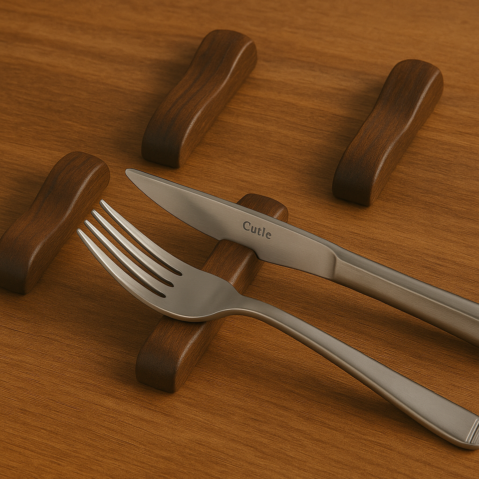 Juego de 4 soportes para cubiertos de madera de mango natural, soportes para vajilla hechos a mano, utensilios para cubiertos de primera calidad, soportes para mesa de comedor moderna, tendencia
