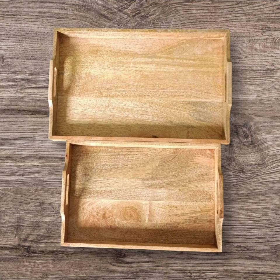 Juego de bandejas de servir rústicas portátiles y ligeras de madera de mango natural - Uso comercial para catering