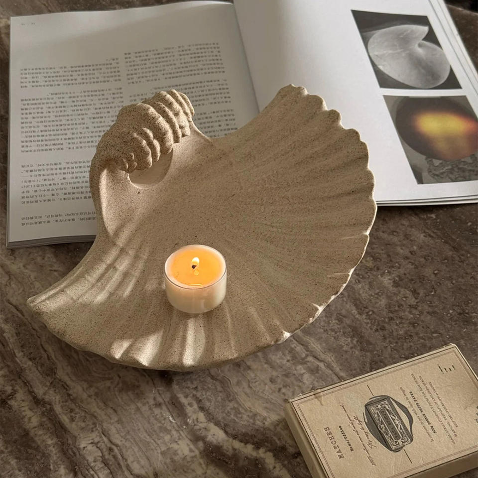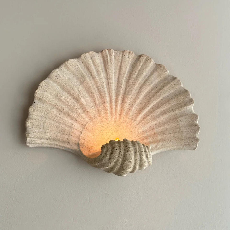 Portavelas y Lámpara de Pared de Concha de Arenisca de Mármol Natural, Decoración Boho Costera, Luz de Mesa/Pared de Doble Uso
