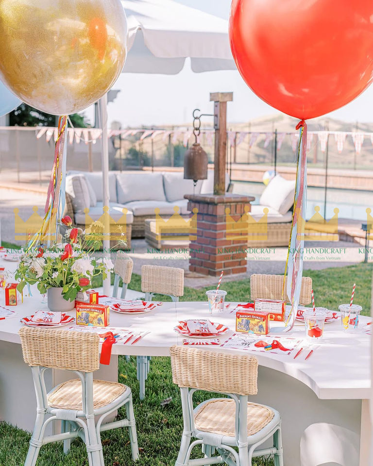 Juego de mesa y sillas para niños de ratán al aire libre de materiales naturales para niños y niños