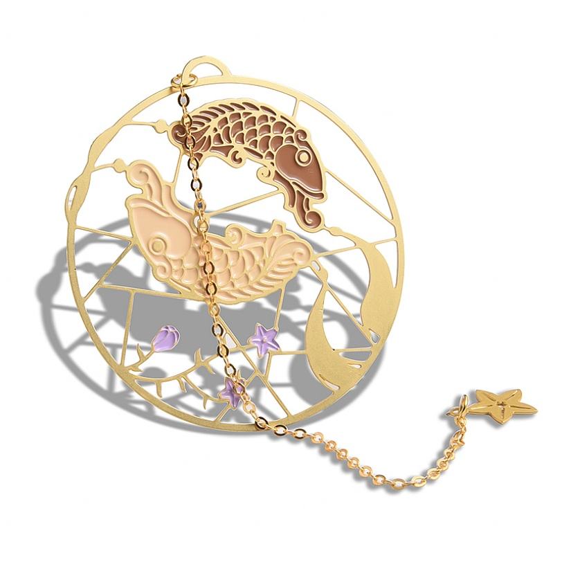 Marcapáginas de Metal Natural Personalizado con Grabado en Oro, Diseño Creativo de Carpa Común, Marcapáginas de la Suerte