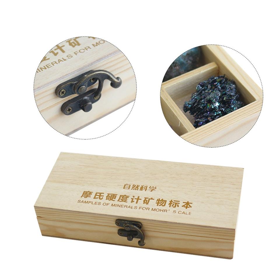 Especímenes de roca mineral natural Juego de caja de madera Geografía Enseñanza Recursos Cristales Piedra 10 tipos Escala de dureza Mohs