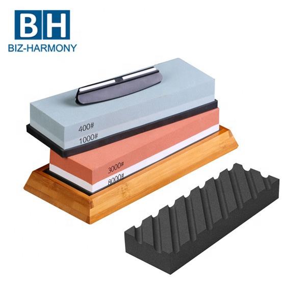 Establecer:Piedra de afilar, parte movible del silicón, base de bambú, guía del ángulo