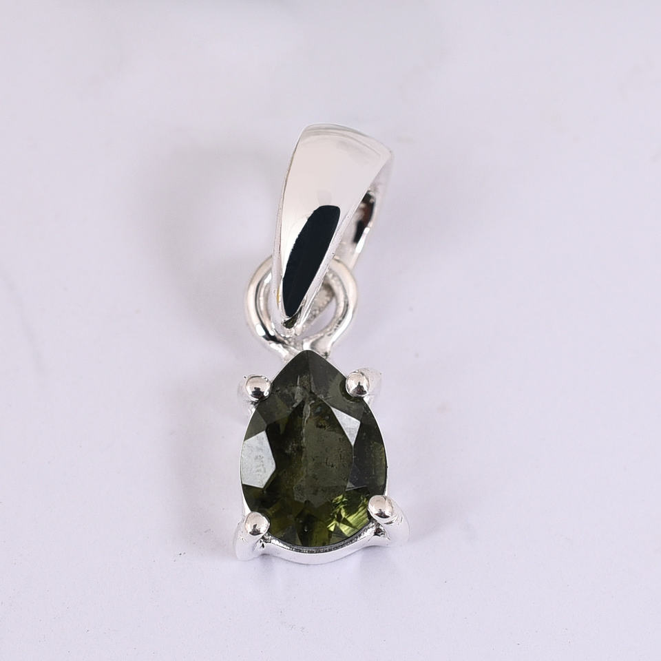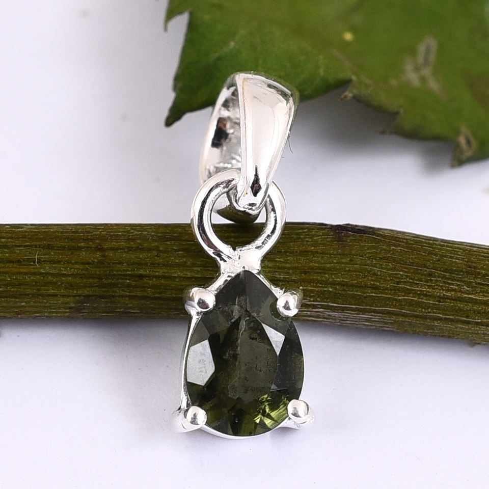 Colgante de piedras preciosas naturales de moldavita, diseño hecho a mano, joyería hecha a mano de plata 925