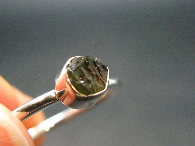 Anillo de plata de moldavita natural Tektite de República Checa tamaño 10 regalo de joyería hecho a mano para novia