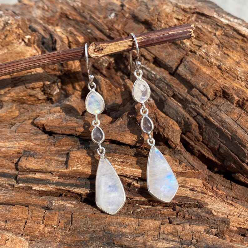 Palabra clave:Pendientes de Piedra Lunar con Brillantes Piedras de Luna
