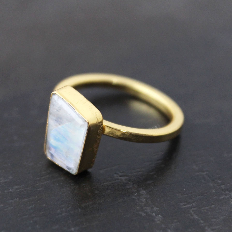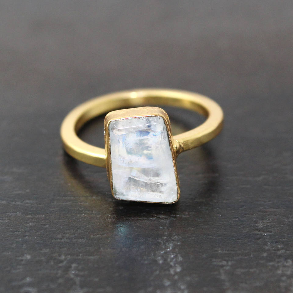 Anillo de piedra lunar natural ajustable chapado en oro piedra de nacimiento de Junio joyería de declaración hecha a mano