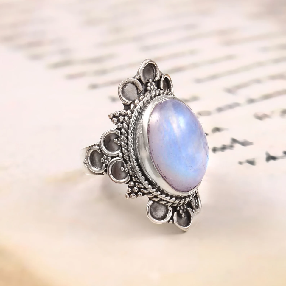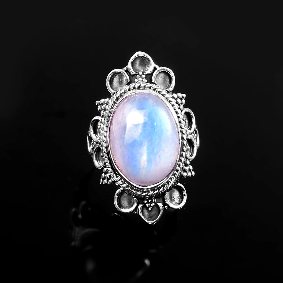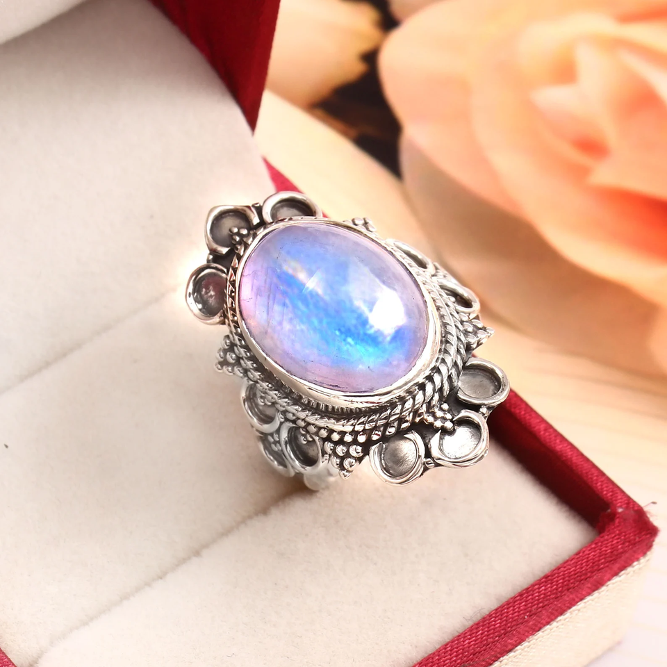 Anillo de Piedra Lunar Natural, Anillo de Diseño, Joyería de Piedras Preciosas Hecha a Mano, Anillo de Plata 925 para Regalo para Ella
