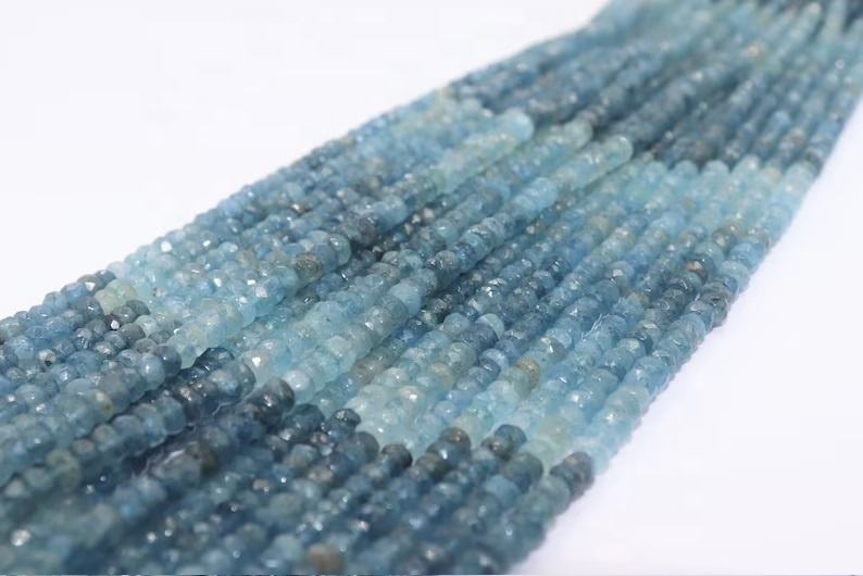 Musgo natural aguamarina facetada Rondelle forma cuentas musgo aguamarina para la fabricación de joyas