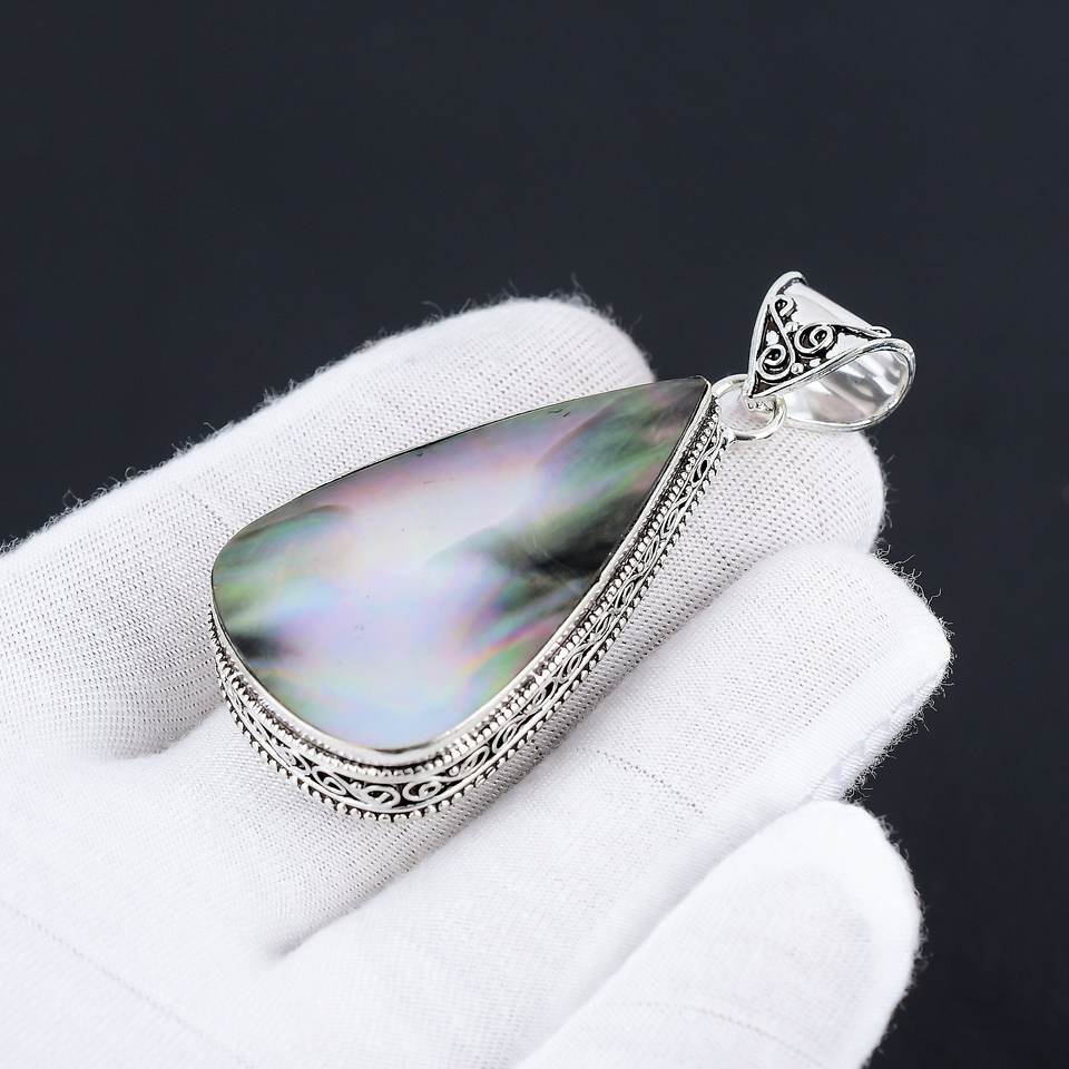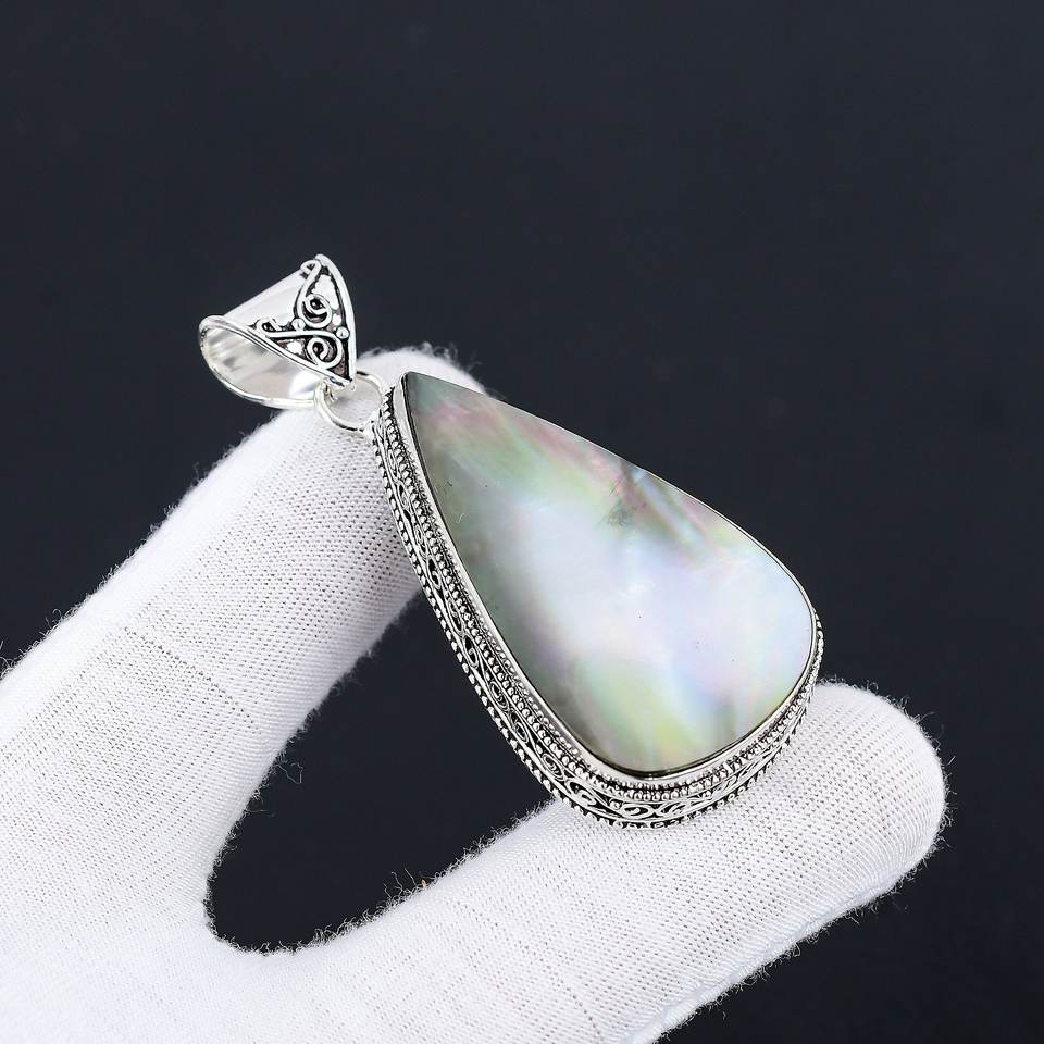 Antiguo colgante de plata de ley 925 clásico diseño de concha de perla madre Natural joyería hecha a mano Ajuste de bisel tecnología de incrustaciones