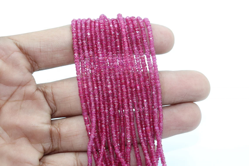 Cuentas Rondelle facetadas de rubí natural de Mozambique Cuentas de rubí de calidad de 2mm Cuentas Rondelle de Rubí