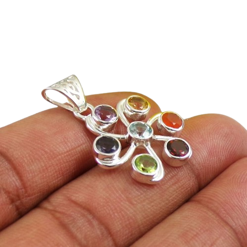 Colgante Hecho a Mano de Plata de Ley 925 con Baño de Rodio, Estilo Boho, con Piedras Preciosas Naturales Multicolores