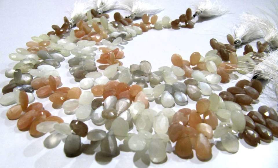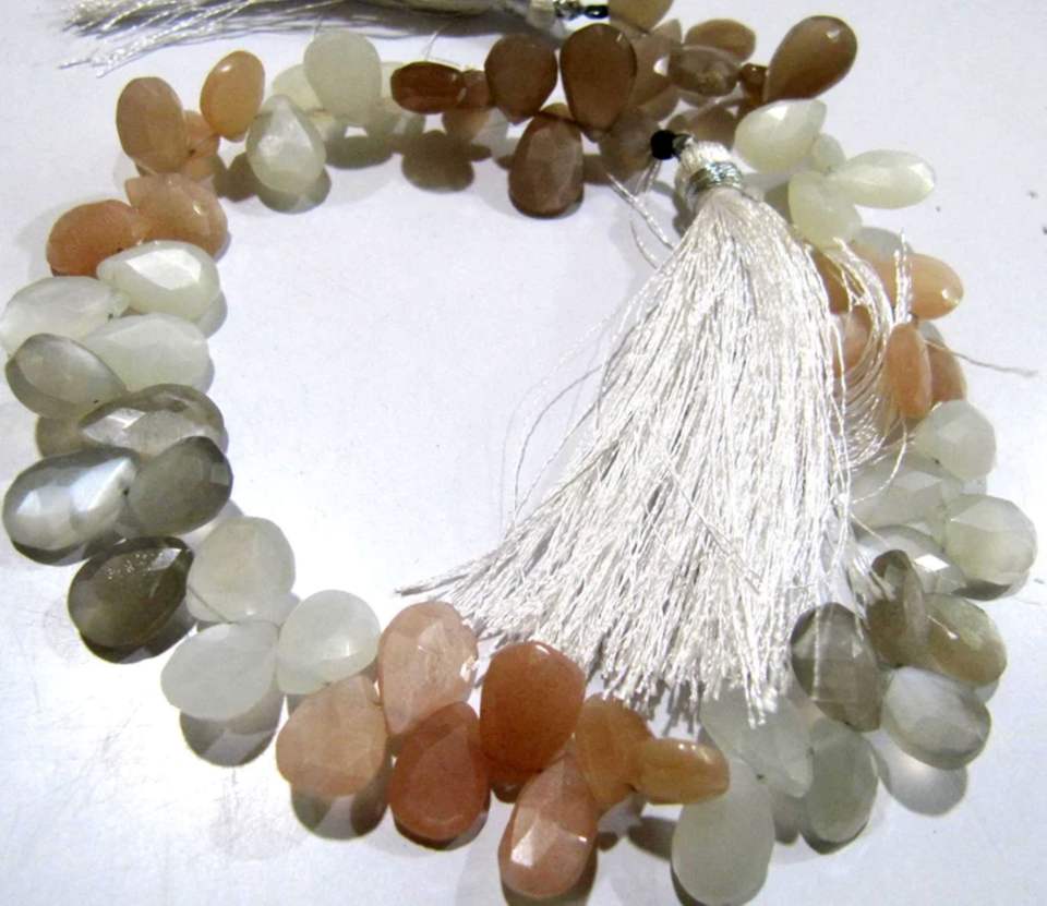 Piedra lunar multicolor natural en forma de pera Briolette facetado 7x10mm a 9x12mm Hilo de cuentas de 10 pulgadas de largo