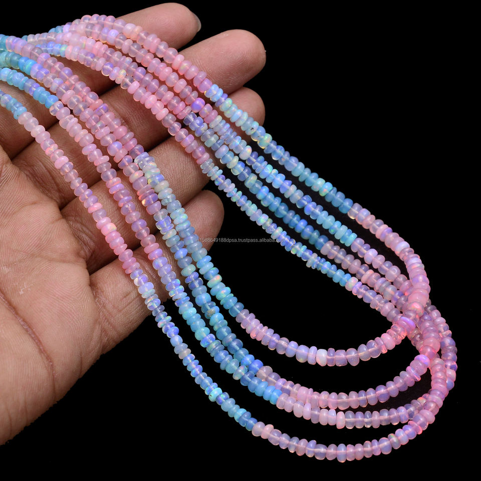 Cuentas de ópalo etíope naturales hechas a mano de 16 pulgadas, múltiples ópalos, piedras preciosas en forma de Rondelle lisas, hilo de 3x3mm-5x5mm para fabricación de joyas