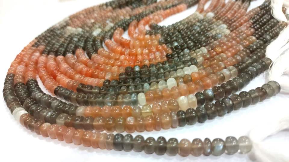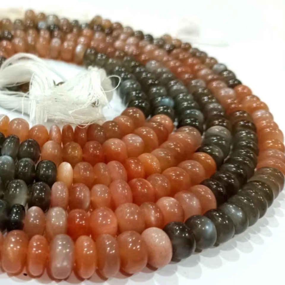Cuentas naturales de piedra lunar múltiple con forma de rondelle lisas de 9 a 12 mm vendidas por hebra de 7 pulgadas de largo