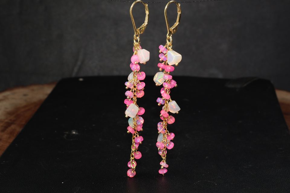 Pendientes Colgantes de Ópalo Natural Multicolor con Cuentas, Plata de Ley 925 Bañada en Oro, Joyería Artesanal de Piedra de Nacimiento para Bodas y Fiestas