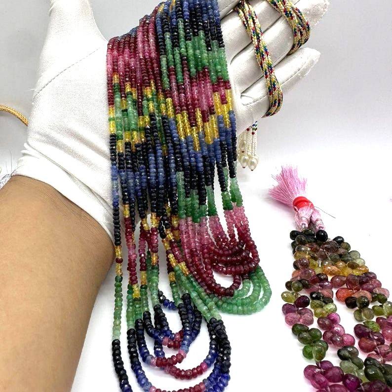 Cuentas Rondelle facetadas multipreciosas naturales Cuentas de piedras preciosas de zafiro rubí esmeralda de 3-4mm para la fabricación de joyas a precio mayorista