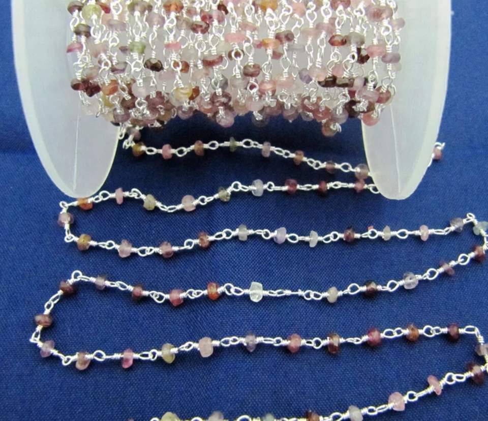 Natural Multi Spinel Rondelle Faceted 3-4mm Beaded Rosario Chain vendido por pie Cadena hecha a mano Suministros al por mayor
