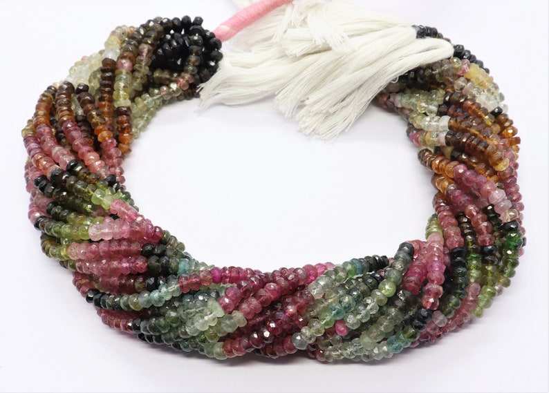 Nombre del producto:Cuentas Rondelle Facetadas de Turmalina Natural Multicolor