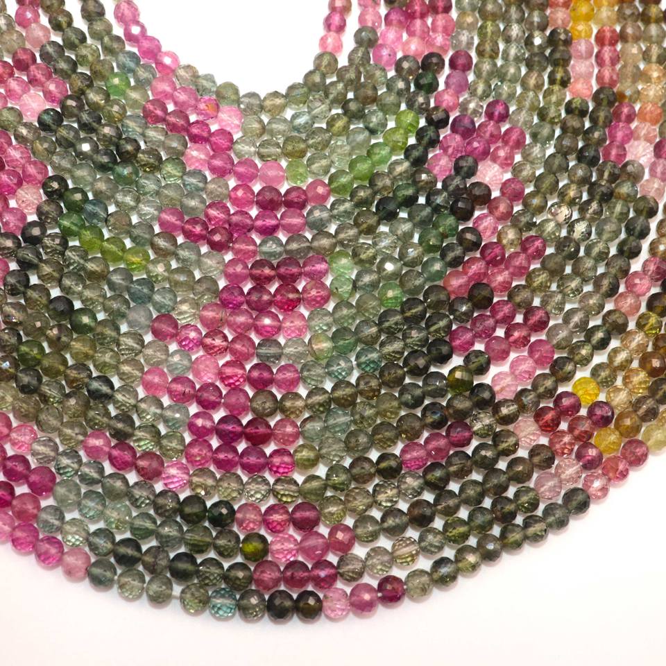 Cuentas redondas facetadas de turmalina múltiple Natural, cuentas Roudelle facetadas de turmalina múltiple de 5-6mm para fabricación de joyas artesanales de 13 pulgadas