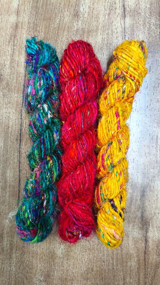 Hilo de seda Sari tejido a mano teñido multicolor natural, hilo de seda 100% ecológico hecho a mano